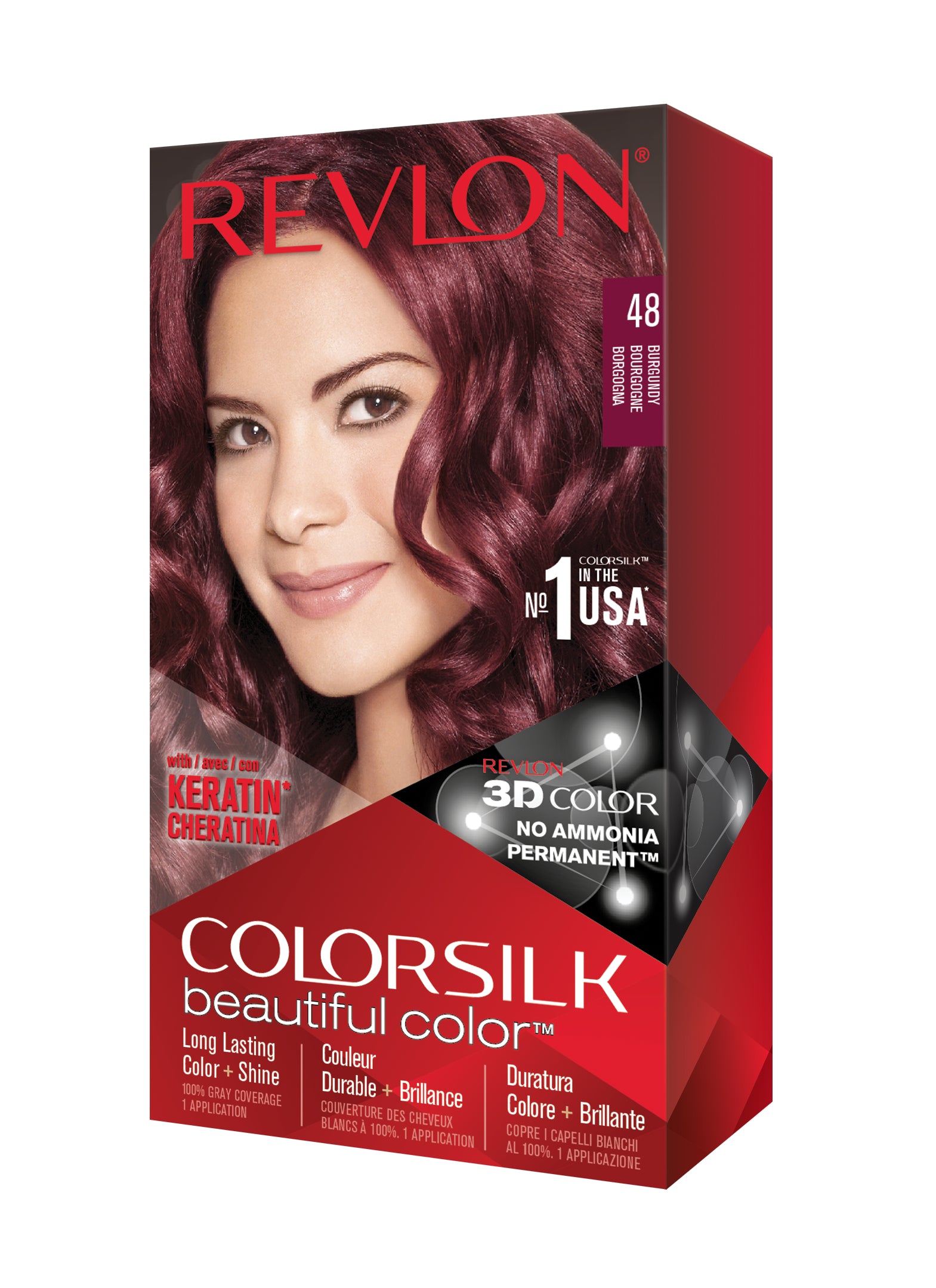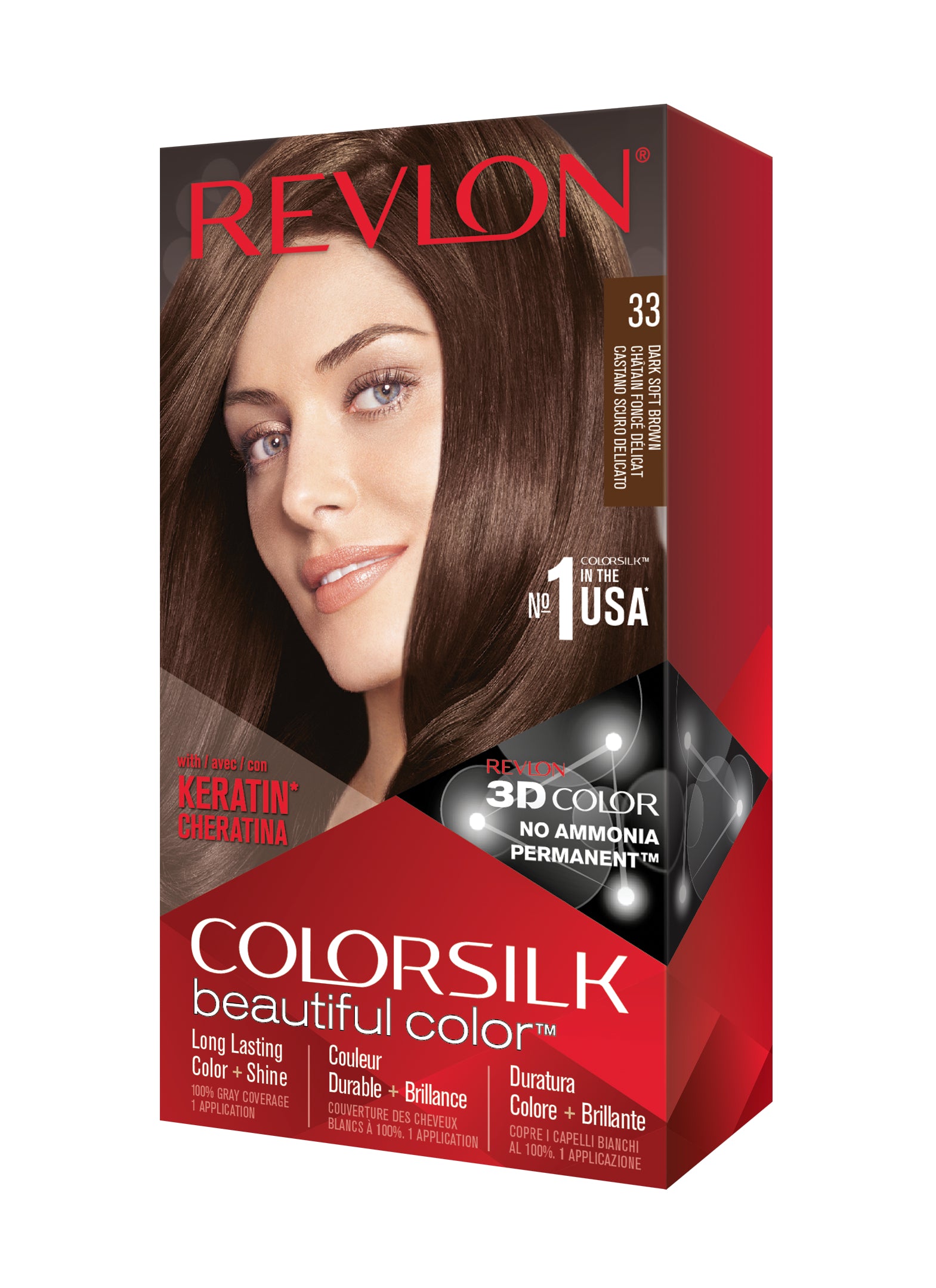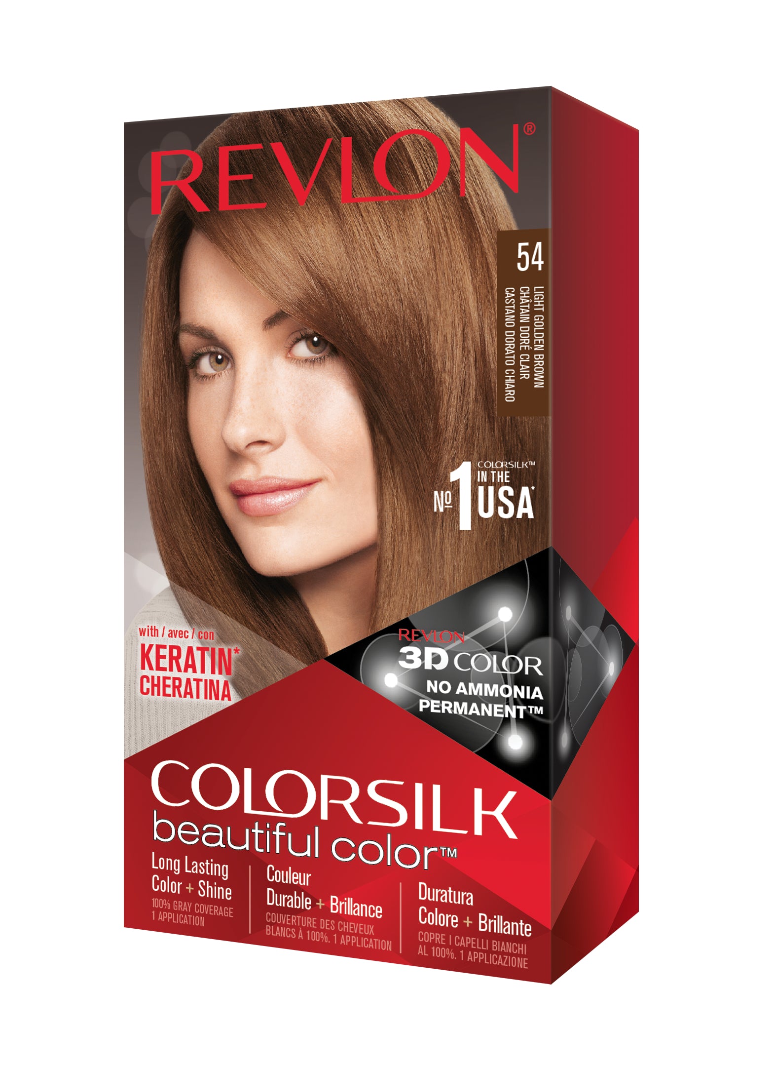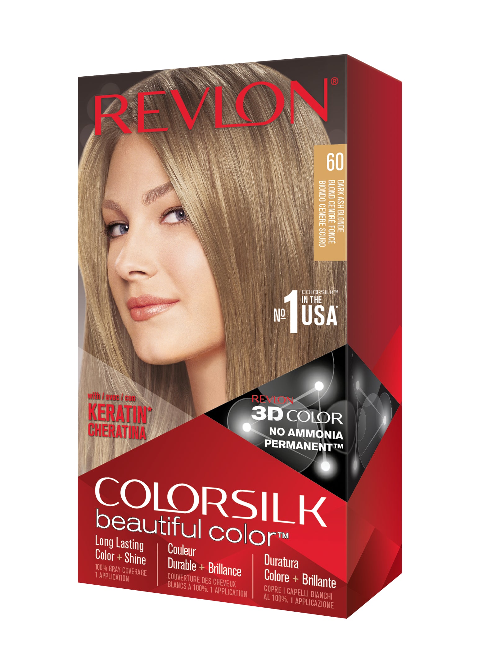 Formulë e re, pa rrëmujë për aplikim të lehtë të bojrave në shtëpi. E njëjta ngjyrë e shkëlqyer e flokëve ColorSilk e dashur nga gratë, tani është bërë edhe më e mirë me nuancat e reja trendi dhe një formulë të re! ColorSilk Beautiful Color™ është marka numër 1 në SHBA*. Ngjyra e flokëve pa amoniak jep 100% mbulim dhe ngjyrë plotshkëlqim të cilësisë së sallonit. Arrini një ngjyrë të pasur dhe të qëndrueshme të flokëve në shtëpi! Flokët lihen të mëndafshtë, me shkëlqim, të shëndetshëm dhe në gjendje më të mirë se përpara se t'i ngjyrosni pas çdo kutie. Revlon's 3D Color Gel Technology™ jep një pamje natyrale dhe ngjyrë shumëtonale nga rrënja në majë, duke ofruar definicion dhe duke rritur dimensionin e flokëve tuaj.