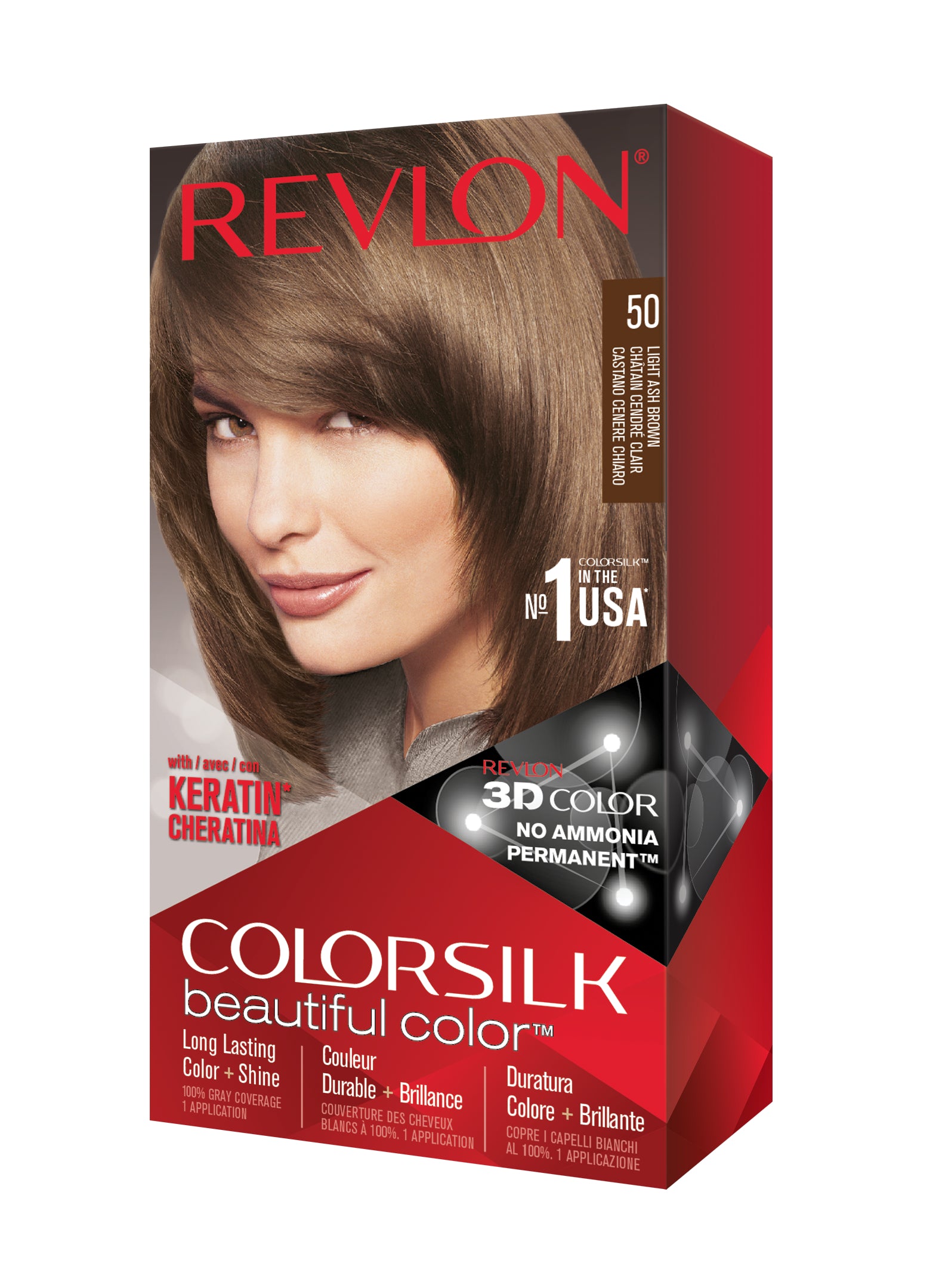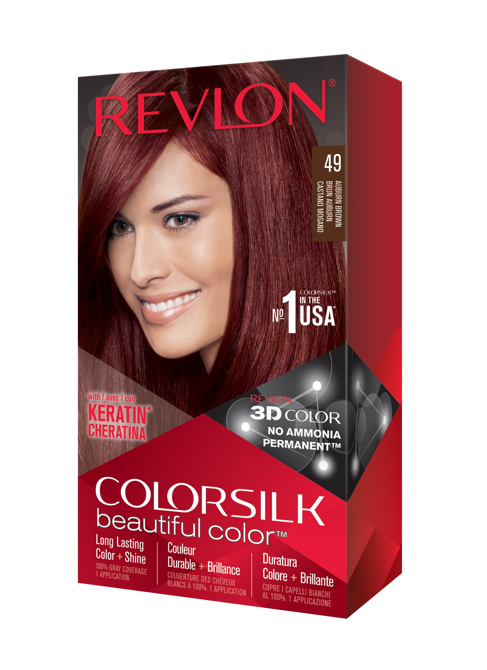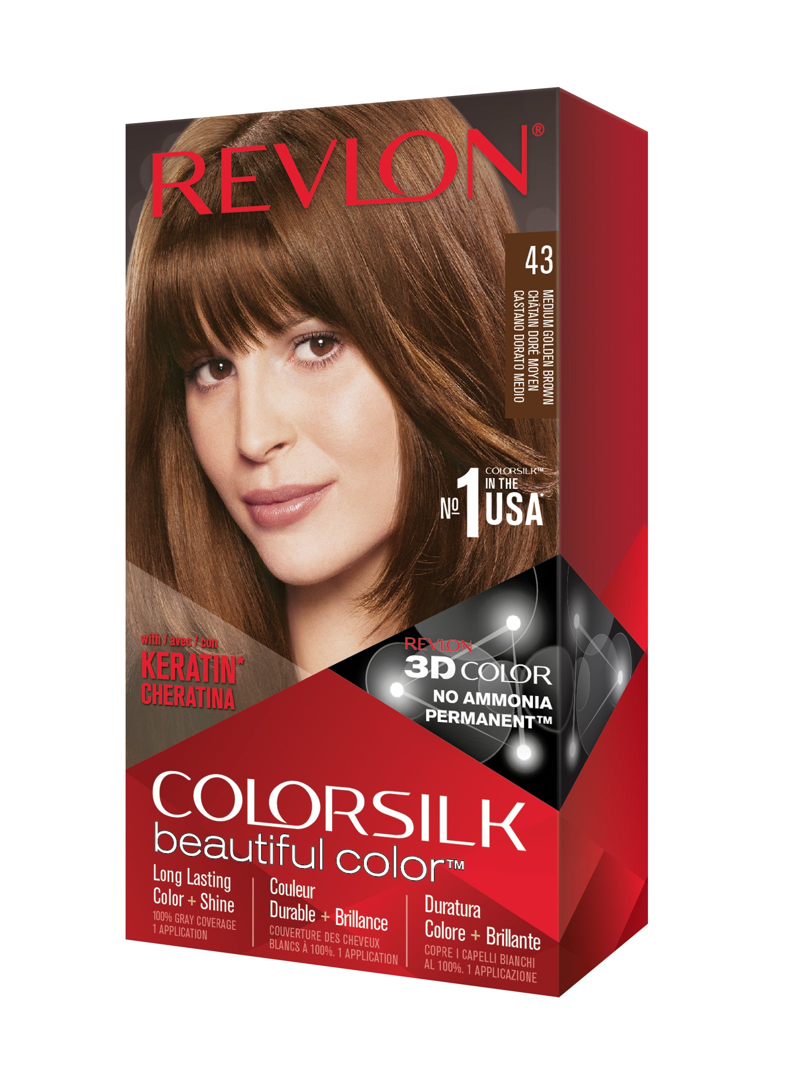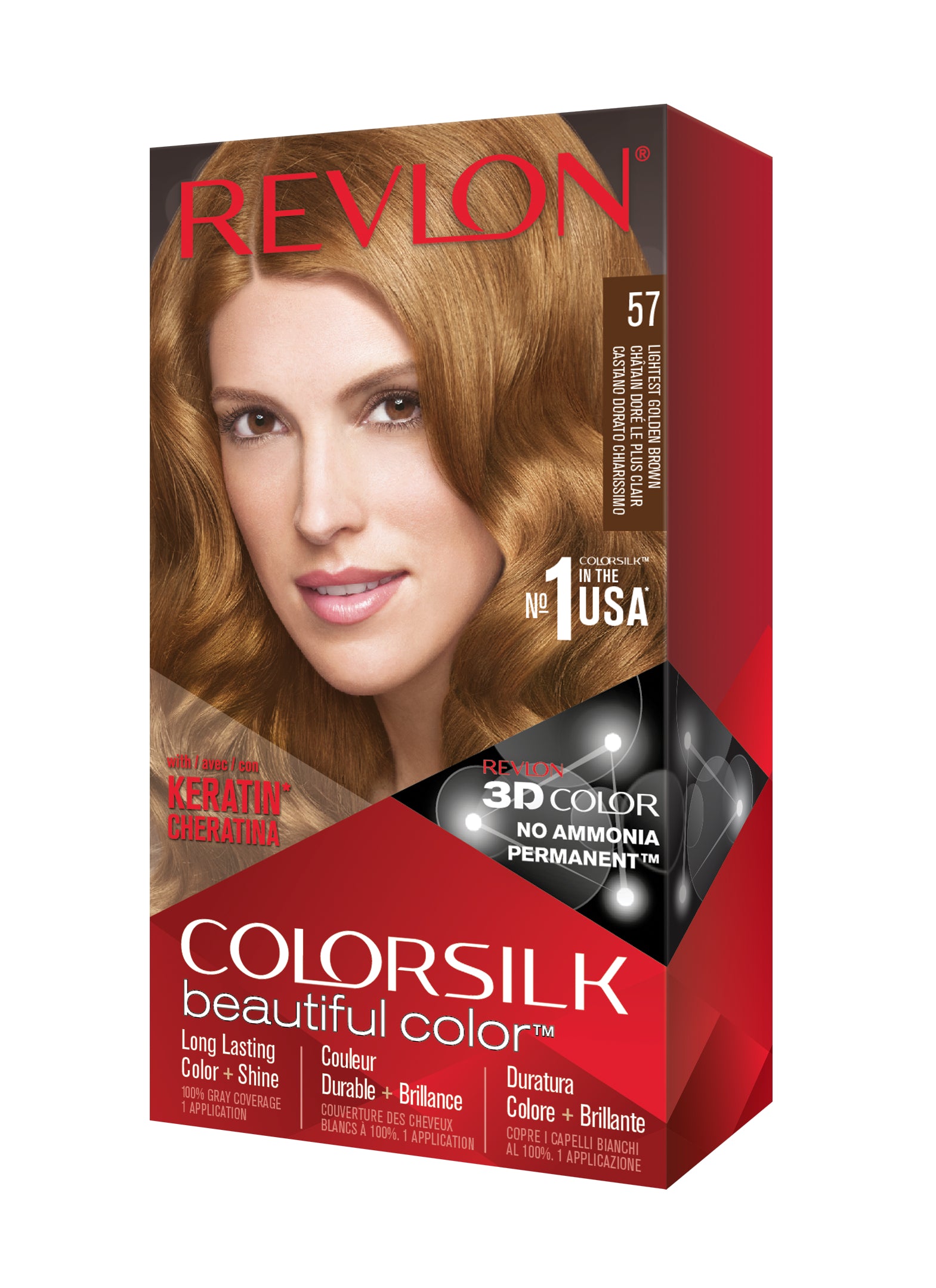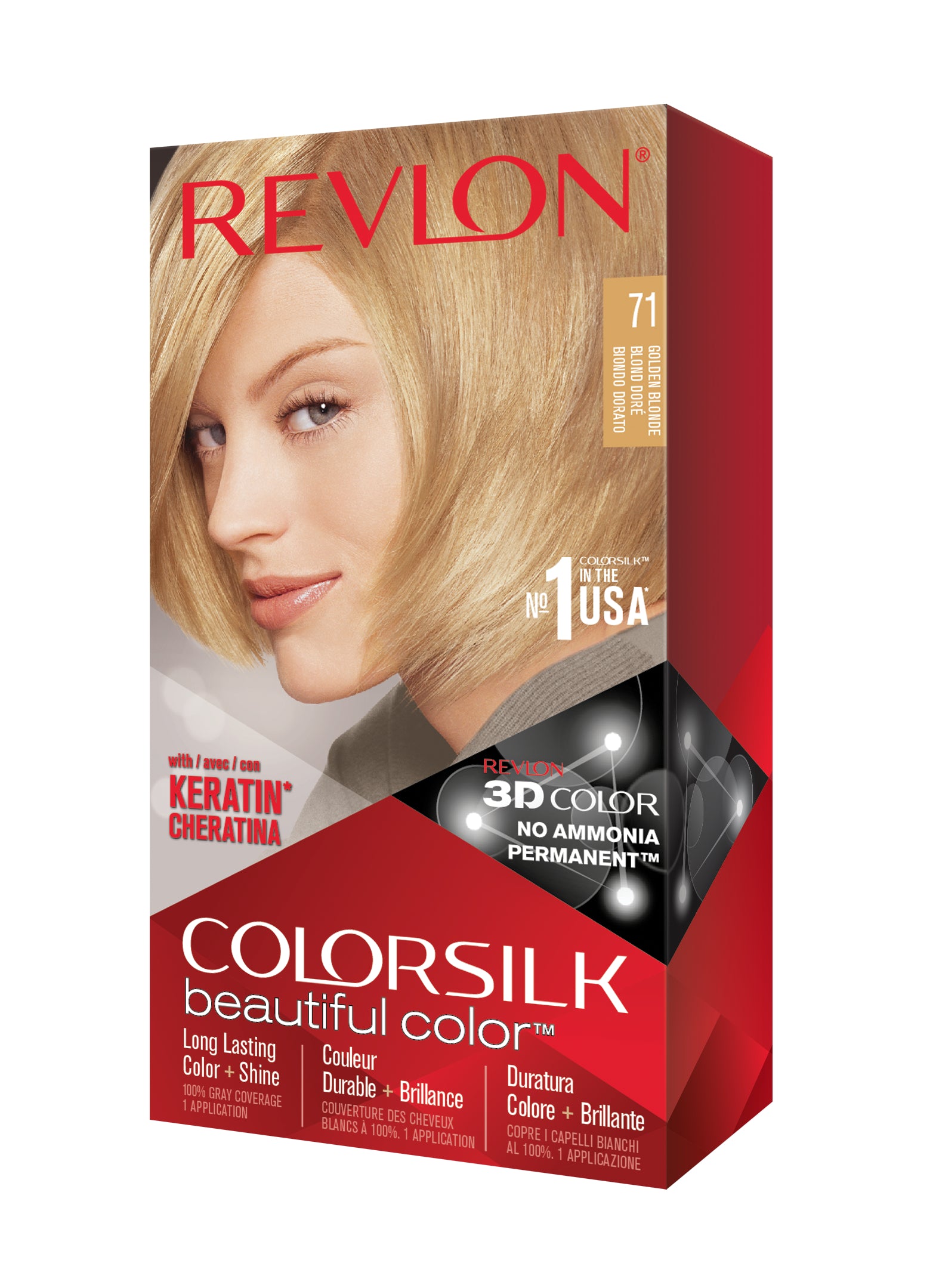 Formulë e re, pa rrëmujë për aplikim të lehtë të bojrave në shtëpi. E njëjta ngjyrë e shkëlqyer e flokëve ColorSilk e dashur nga gratë, tani është bërë edhe më e mirë me nuancat e reja trendi dhe një formulë të re! ColorSilk Beautiful Color™ është marka numër 1 në SHBA*. Ngjyra e flokëve pa amoniak jep 100% mbulim dhe ngjyrë plotshkëlqim të cilësisë së sallonit. Arrini një ngjyrë të pasur dhe të qëndrueshme të flokëve në shtëpi! Flokët lihen të mëndafshtë, me shkëlqim, të shëndetshëm dhe në gjendje më të mirë se përpara se t'i ngjyrosni pas çdo kutie. Revlon's 3D Color Gel Technology™ jep një pamje natyrale dhe ngjyrë shumëtonale nga rrënja në majë, duke ofruar definicion dhe duke rritur dimensionin e flokëve tuaj.